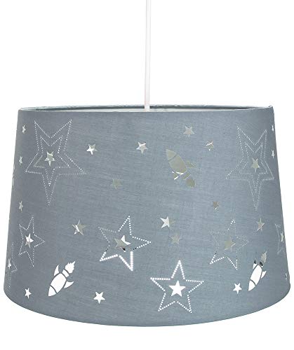 Specification: Fun Rockets and Stars Per bambini/bambini Lampada a sospensione in cotone grigio o paralume:FBM