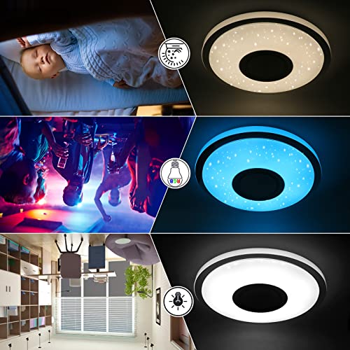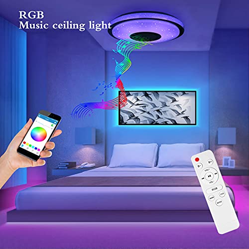 Plafoniere LED Soffitto RGB con Altoparlante Bluetooth, 60W RGB 5450LM Dimmerabile Lampada da Soffitto con Telecomando e Controllo APP per Camera da letto, Camera dei Bambini, Ø38cm
