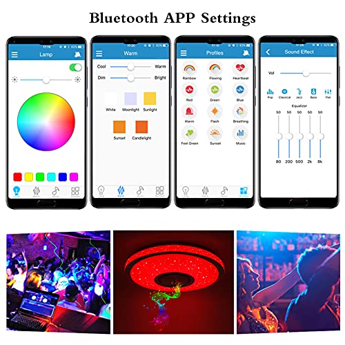 Specification: Plafoniere LED Soffitto RGB con Altoparlante Bluetooth, 60W RGB 5450LM Dimmerabile Lampada da Soffitto con Telecomando e Controllo APP per Camera da letto, Camera dei Bambini, Ø38cm