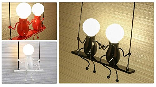 Questa lampada da parete alla moda è una bambola altalena, il materiale è principalmente color ferro, la corda dell’altalena è una corda di nylon, resistente, molto dinamica
