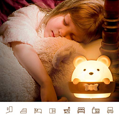 Bel design e utilizzo in più scene: l’aspetto carino e divertente di un piccolo orso è molto popolare tra i bambini. Anche per la protezione degli occhi, lampada da letto, lampada da comodino, lampada da esterno portatile, lampada da parete mobile touch control, un regalo perfetto per bambini, familiari e amici.