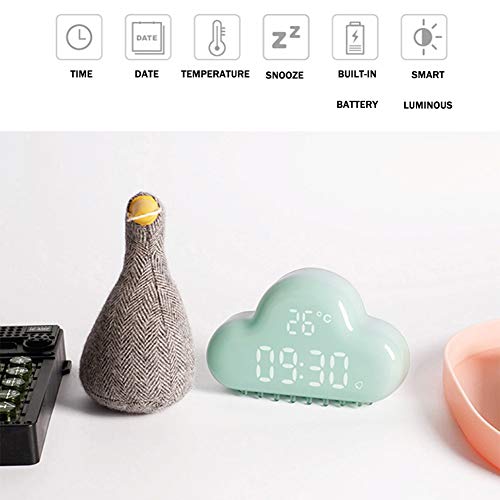 Luce Notturna,Nuvole Digital Alarm Clock Bedside Clocks Function Date Temperature Display Travel Kitchen Bedroom Sveglia Bambini Doppi Allarmi Luce Notturna Lampada Comodino Tavolo Funzione,Verde